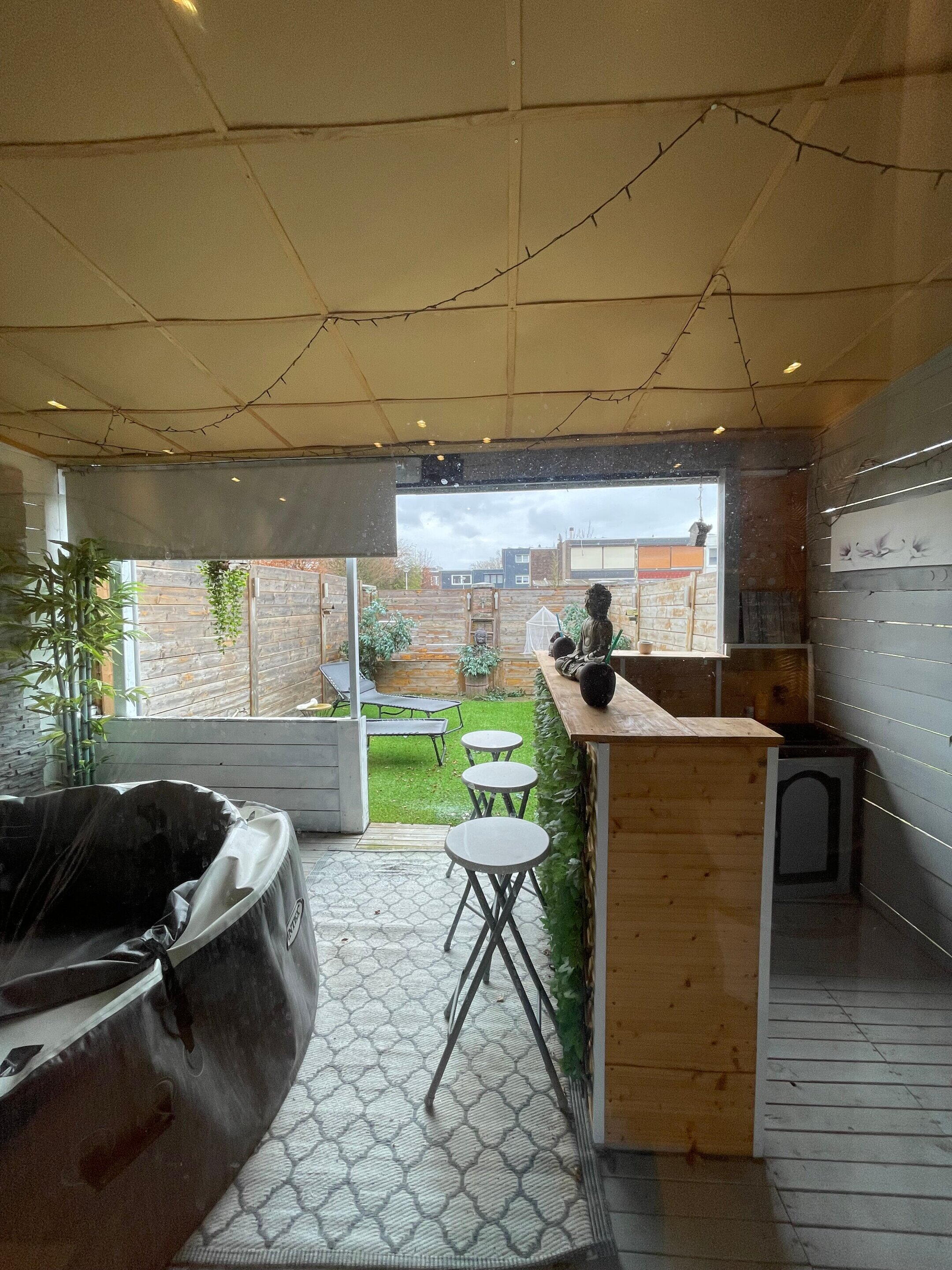 De vrijstaande externe berging is geschikt voor opslag of het stallen van fietsen.